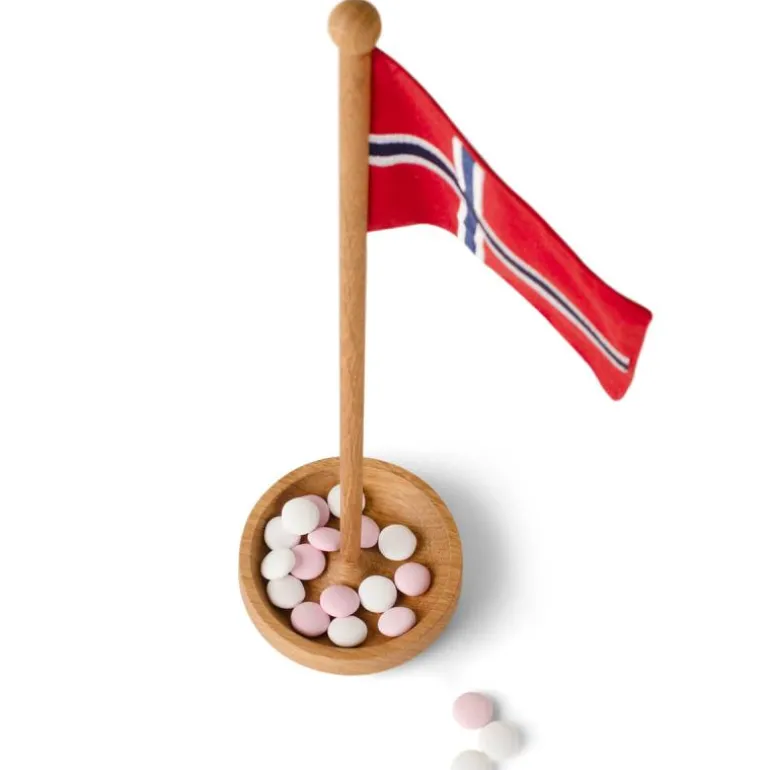 Tha Table Flag norsk flagg 39 cm eik/tekstil fra Spring Copenhagen. Bordflagget designet av hor Høy er 39 cm høyt og er laget av eik. Det som er spesielt med designet er den avrundede basen, som gjør det mulig for bordflagget å vippe bakover og fremover. Basen er også formet som en liten skål – perfekt for oppbevaring av f.eks. søtsaker. Flagget kan fjernes ved å løfte den elegante lille knotten på toppen.