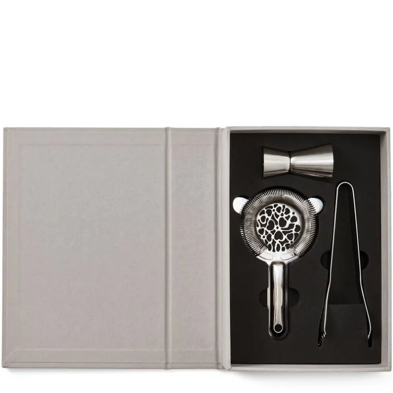The Essentials drinksett fra Printworks. Oppdag det essensielle settet for å lage de mest forfriskende cocktailer – en raffinert verktøykasse i en elegant boklignende boks som er den perfekte gaven. Alle produktene er laget av rustfritt stål og tåler oppvaskmaskin.