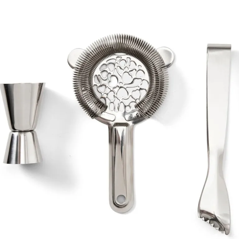 – Hawthorne sil – Brukes til å filtrere drikkeingrediensene når du heller cocktailen i et glass. En klassisk gjenstand i enhver bar siden 1894.
