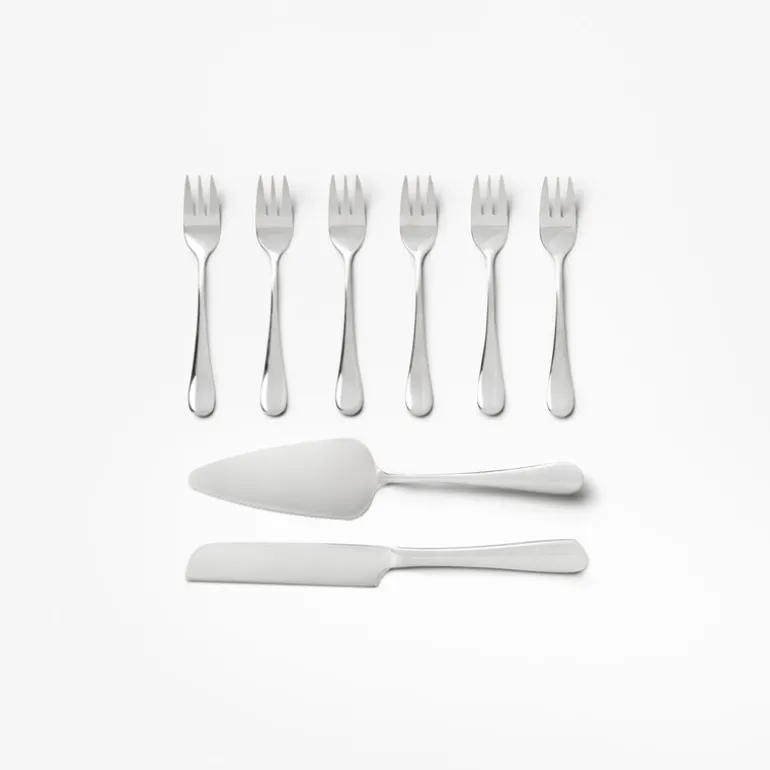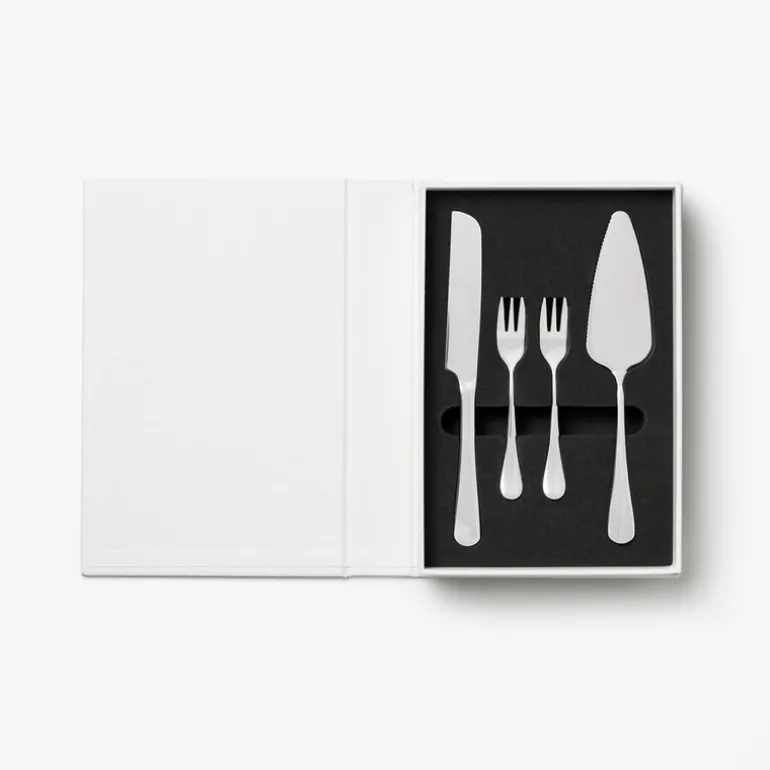 Settet gjør kakeserveringen til en sofistikert opplevelse og passer utmerket sammen med oppskriftsbøker som står fremme. En gjennomtenkt gave til bakeentusiaster eller som et personlig tillegg til kjøkkenet.