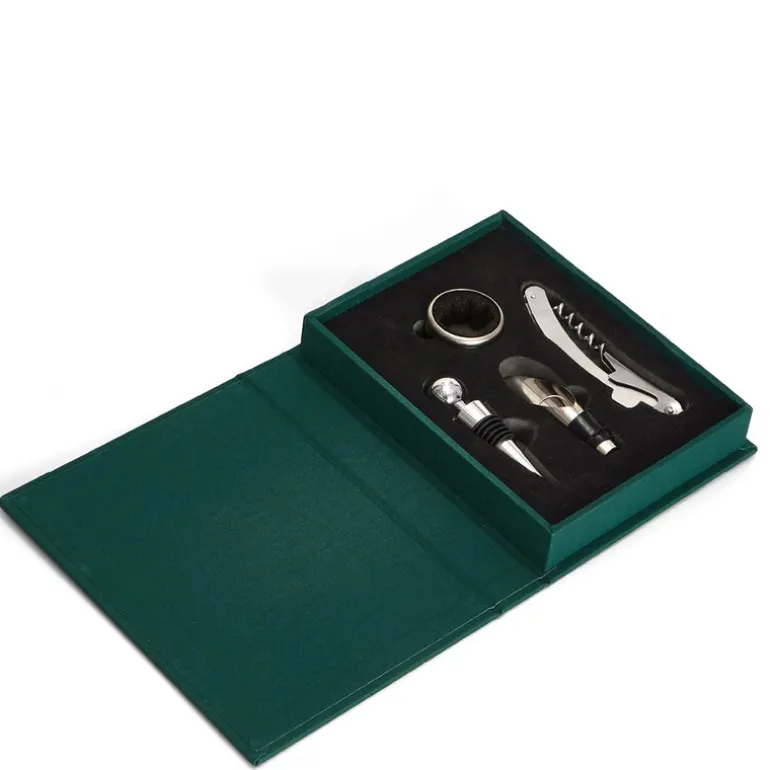 The Essentials vinsett fra Printworks. Oppdag det essensielle settet for å perfeksjonere vinopplevelsen din – en raffinert verktøykasse i en elegant boklignende boks som gjør den til den perfekte gaven. Alle produktene er laget av rustfritt stål og tåler oppvaskmaskin.
