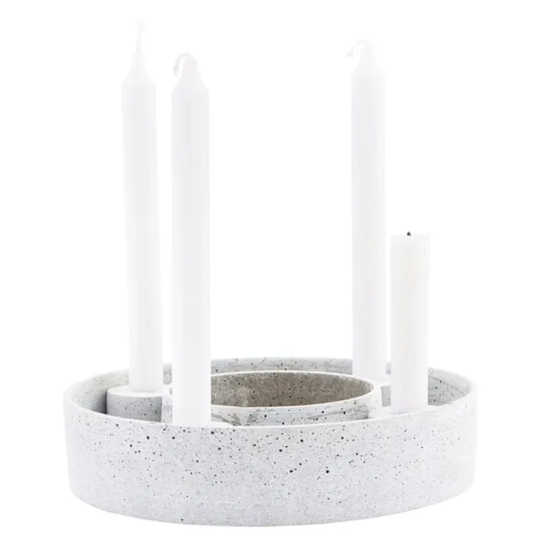 Ring-lysestaken fra House Doctor er en elegant og stilig lysestake som kombinerer moderne design med et snev av rustikk sjarm. Med plass til fire lys og en diameter på 26 cm er den perfekt som et dekorativt midtpunkt på bordet eller som en moderne adventslysestake. Ringen er laget av polystone og har en vakker lysegrå farge og en rund form som skaper et subtilt, men iøynefallende inntrykk.