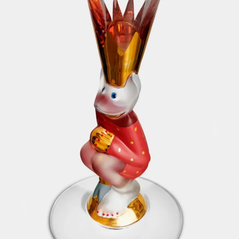 The sparkling devil champagneglass rød 19cl fra Orrefors. Etter Gunnar Cyréns bortgang i 2013 har hans sønner gått igjennom alle hans skisser. De fant mange skisser av champagne glasset inspirert av «The Snaps Devil» glassene. Champagne glasset kalt «Sparkling Devil» gikk i produksjon og er nå en del av Orrefors sortement. Produktet er munnblåst i Sverige og hvert glass er hånd malt med detaljer i 22 karat gull. Serien er tilgjengelig i mange fargekombinasjoner og det vil komme en ny variant hvert år helt til serien er komplett.