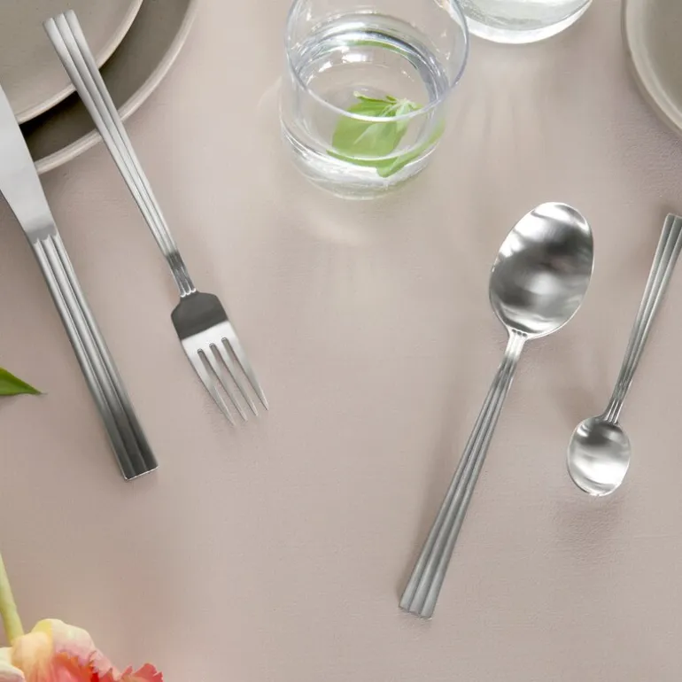 Laget av rustfritt stål med en matt finish, kombinerer settet stil og funksjonalitet. Bestikket tåler oppvaskmaskin og er designet for å gi både hverdags- og festmåltider et sofistikert preg.