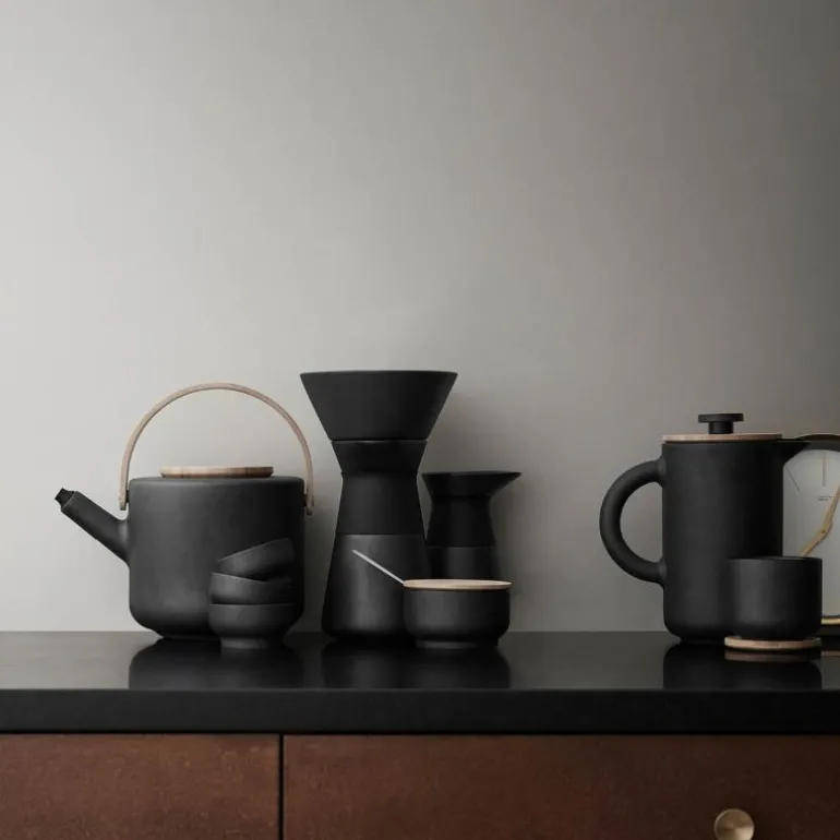 Den prisvinnende Theo-serien kommer med en tekanne som kombinerer skandinavisk design med asiatisk kultur. Theo-serien er med sine flotte kontraster skapt til å vekke sansene. Formet i matt sort stentøy med blank glasur og lokk og hank i bambus er Theo tekanne både rå og elegant. Kombiner tekannen med andre deler fra Theo-serien når du dekker bordet.