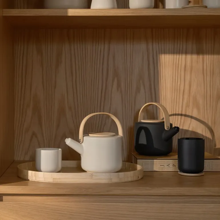 Den medfølgende trebrikken i asiatisk bambus tilfører en naturlig og vakker kontrast, samtidig som den beskytter bordet mot te-ringer. Theo termokopp er ikke bare praktisk, men også en stilfull detalj.