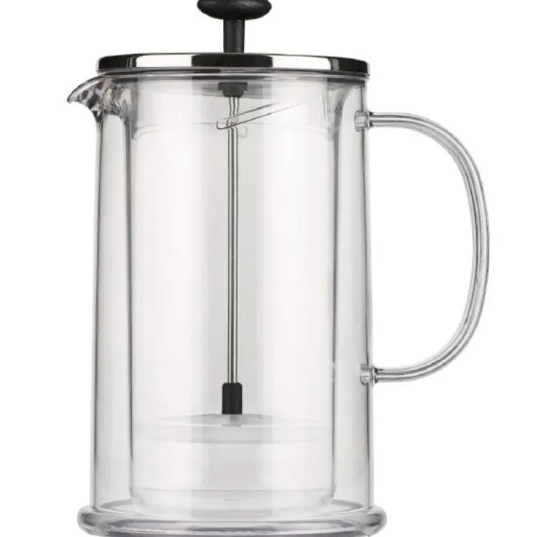 Kannen er laget i Europa, av BPA-fri plast, er lett, ripebestandig og tåler temperaturendringer. Den vil ikke flekke eller absorbere sterke smaker ? noe som gjør den perfekt hvis du bytter mellom å presse te og kaffe. Kannens gjennomsiktige doble veggdesign beholder varmen fra drikken din, og lar deg se når teen har nådd ønsket styrke. Denne kommer med sølvfarget lokk.