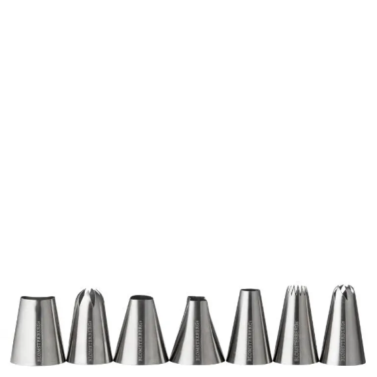 Blomsterbergs sprøytetipp-sett 7 deler i stål er det ultimate verktøyet for alle som ønsker å gi sine bakverk et profesjonelt preg. Settet inneholder syv tipper i rustfritt stål, nøye designet for ulike bruksområder, og leveres i en stilren metallboks som holder alt samlet. Ettersom de tåler oppvaskmaskin er det enkelt å rengjøre tippene etter bruk.