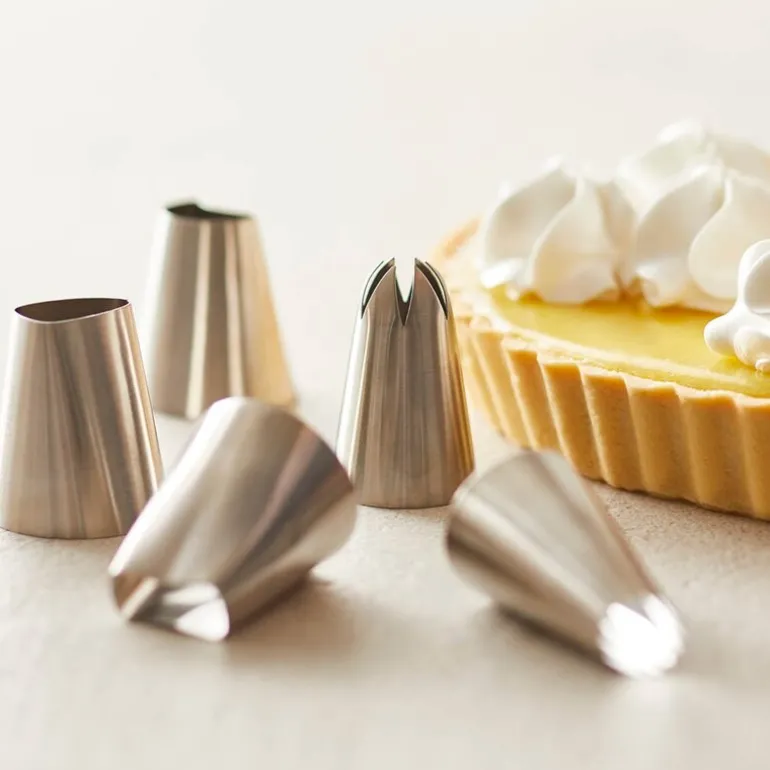Trekanttippen og halvbuetippen åpner for kreative muligheter, særlig med kransekakemasse med fyll. Sommerfugltippen er prikken over i-en for de som ønsker unike detaljer på sine kaker.