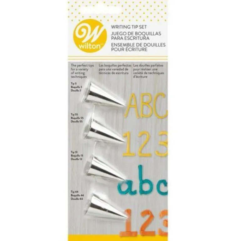 Med dette settet fra Wilton kan du enkelt lage kreative bokstaver og tall i melis eller smørkrem. Ideell å gi kaken eller cupcakesen en personlig hilsen. Innehold 4 tipper: 3, 55, 13, 44. Kan vaskes i oppvaskmaskin.
