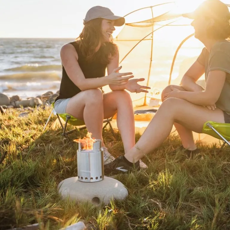 Turkjøkken, Titan, fra Solo Stove. Passer fint til 2-4 personer på tur. Med en vekt rett under halvkiloen, så er den klar for å reise, varme og inspirere deg.Det patenterte designet skaper en effektiv varme ved å bruke kvister, kongler og annen biomasse, så du kan få varm mat på minutter, hvor enn du skulle være.Designet med en dobbel vegg, er Solo Stove Titan en naturlig konveksjonsovn.Luftinntakshullene på bunnen av ovnen kanaliserer luft til bunnen av bålet, samtidig som det kanaliserer varm luft opp mellom veggene i ovnen. Denne utstrømningen av forvarmet oksygen som føres tilbake i ovnen gjennom de mindre hullene på toppen av ovnen, forårsaker en sekundær forbrenning. Dette gjør at brannen kan brenne mer fullstendig, og det er derfor det er veldig lite røyk under full forbrenning. En mer effektiv forbrenning betyr også at du bruker mye mindre trevirke sammenlignet med en åpen bål.Mål:Høyde: 20 cmDiameter: 13 cmVekt: 468 gramDrivstoff:Kvister, pinner, kongler og annen biomasse.
