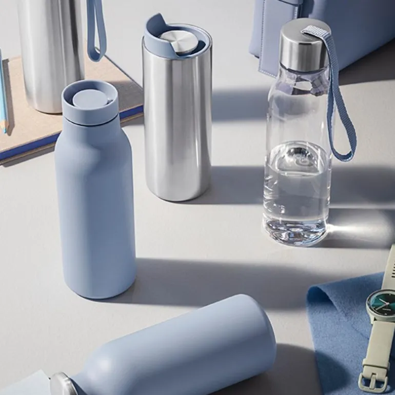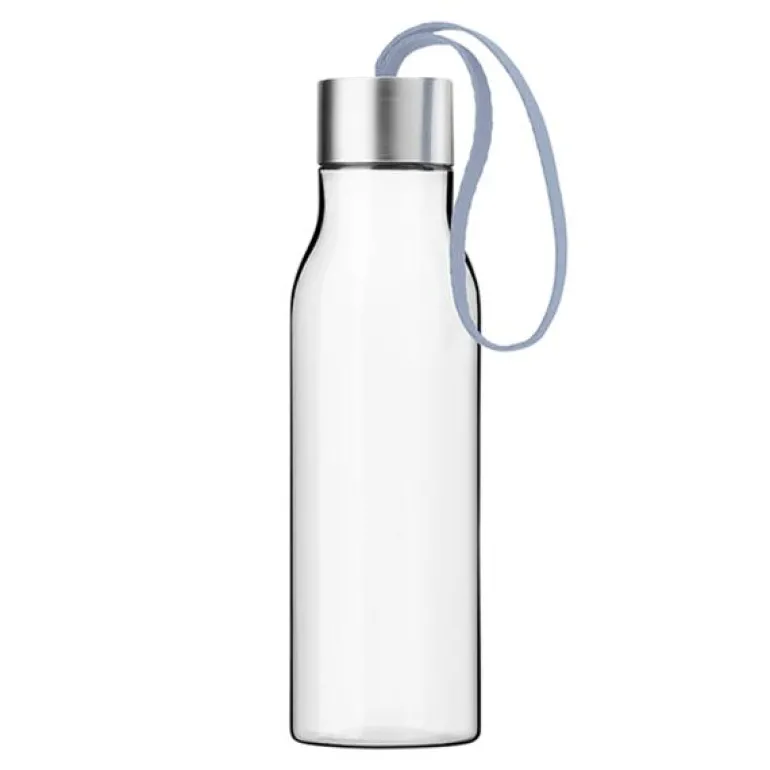Praktisk drikkeflaske 0,5 liter med snor i fargen blue sky, fra Eva Solo. Drikkeflasken gjør det mulig å ha friskt vann tilgjengelig hele tiden. I vesken, på kontoret og til fritidsbruk. Den er 100 % tett, kan brukes igjen og igjen og belaster derfor ikke miljøet. Drikkeflasken er fremstilt i BPA-fri plast, noe som innebærer at den ikke inneholder bisfenol, ftalater eller tungmetaller.
