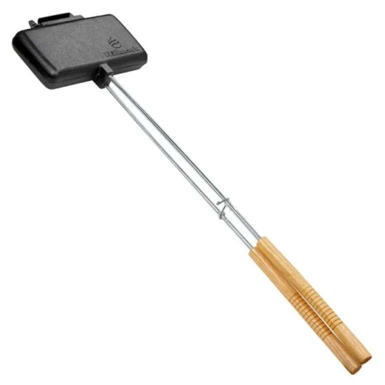 Et solid toastjern 22 x 11 i støpejern, fra Hällmark. Toastjernet er beregnet for bruk over åpen ild. Trehåndtak og langt skaft for enkel håndtering. Perfekt til toast i naturen eller grill opp til flere grillpølser samtidig i den. Mål på grilloverflaten ca 20 × 11 cm. Total lengde ca 75 cm.