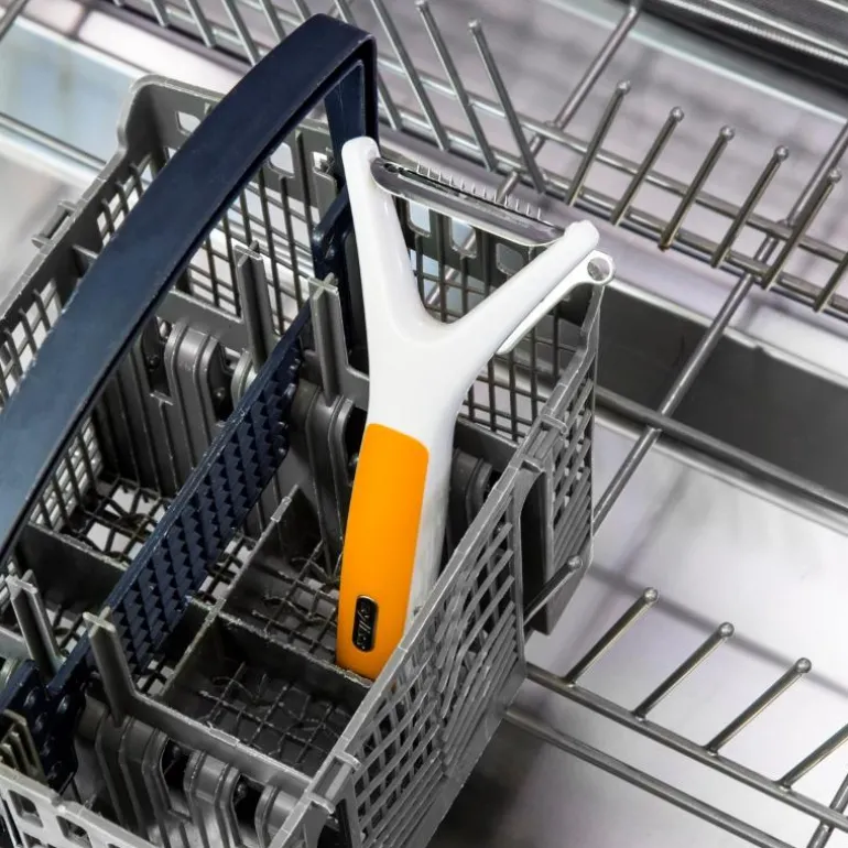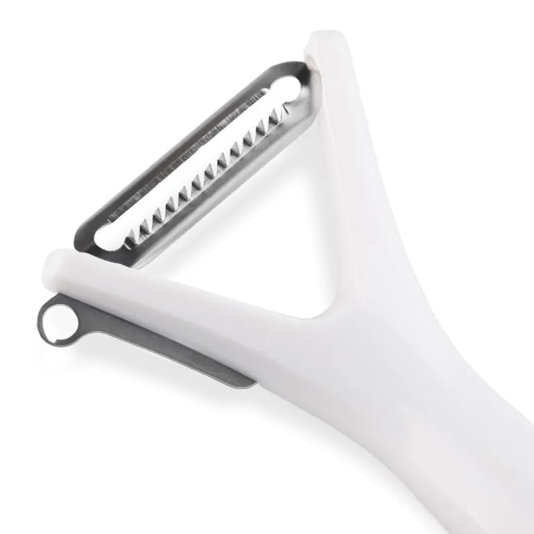Zyliss Julienne Peeler skaper ultra tynne, profesjonelle julienne strimler av frukt og grønnsaker raskt og enkelt. Det ekstra skarpe svingbladet med tenner i rustfritt stål skiver 2 ganger for å oppnå et flott resultat. Brukervennlig med et ergonomisk håndtak som passer komfortabelt i hånden.