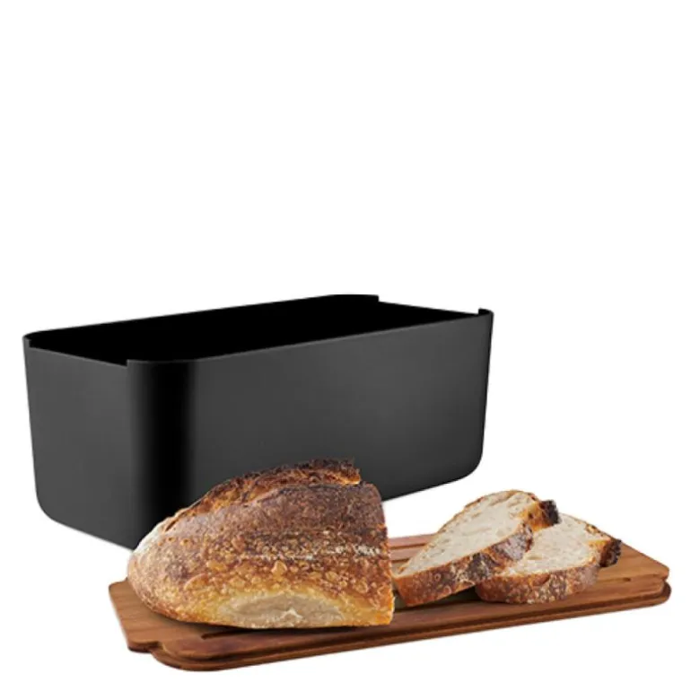 Tools brødboks med bambuslokk 42x19x15,5 cm svart fra Eva Solo. Oppbevar brødet ditt på en optimal måte som holder det ferskt lenger med denne stilige brødboksen fra Tools-serien. Brødboksen har et integrert skjærefjøl i lokket, som gjør det enkelt å skjære brødet uten å søle.