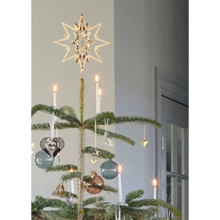 Gjennom sitt brede sortiment som inkluderer alt fra kunstneriske masterpieces til smykker, interiørprodukter og klokker, tilbyr Georg Jensen designobjekter som oppfyller alle behov og ønsker. Top Star toppstjerne er en tidløs dekorasjon som gir treet ditt et sofistikert uttrykk, samtidig som den hedrer tradisjonen og elegansen som Georg Jensen er kjent for.