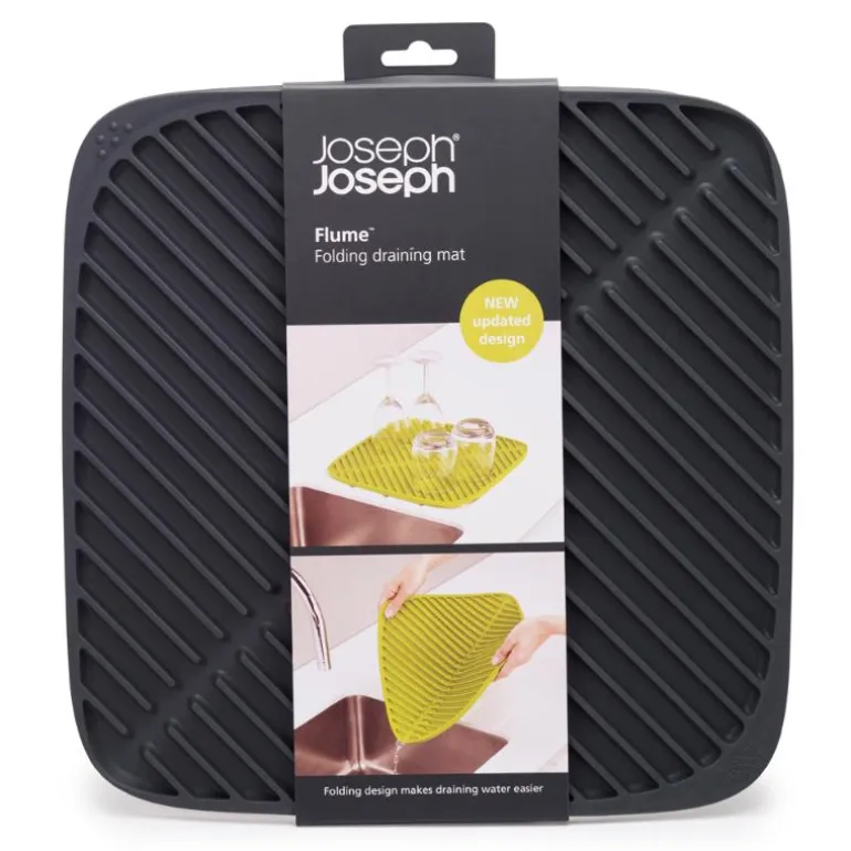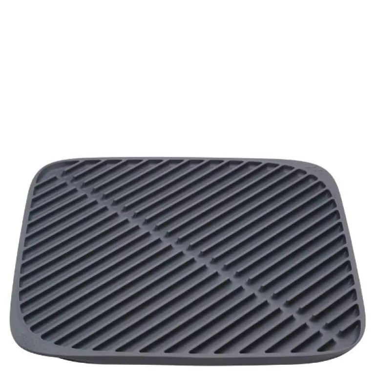 Todelt tørkematte med diagonale furer som effektivt samler opp overflødig vann. En praktisk kanal i midten fører vannet til hjørneåpningene, slik at du enkelt kan drenerer av oppvann som samler seg opp. Matten kan enkelt rulles sammen og brettes for enkel oppbevaring, og tar derfor minimalt med plass.