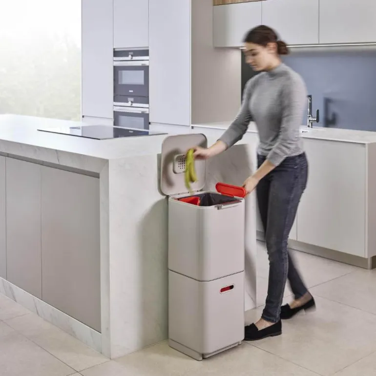 Hvert rom har en avtakbar bøtte som kan utstyres med en standard pose for generelt avfall eller to mindre poser, ved bruk av de integrerte posekrokene, for å skille forskjellige typer resirkulering.