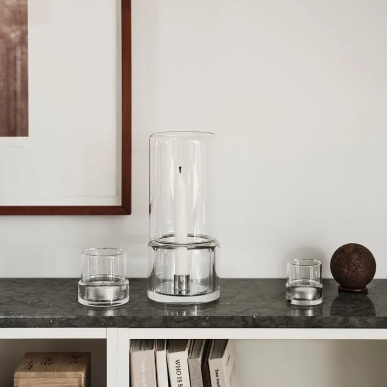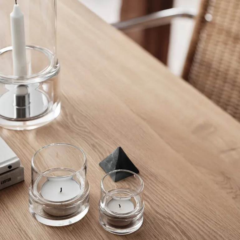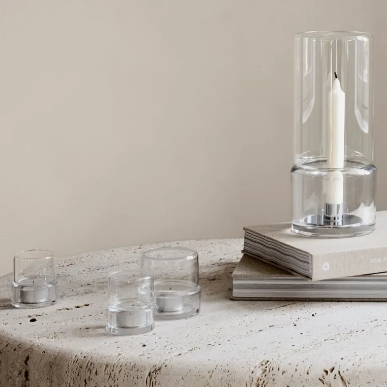 Den nederste lyslykten, som måler 70 mm, er spesielt designet for å passe både innendørs og utendørs, og er perfekt for et lite telys med en diameter på 38 mm. Denne utformingen gir et mykt og behagelig lys, noe som skaper en koselig atmosfære uansett hvor den plasseres. Den minimalistiske estetikken kombinert med funksjonaliteten gjør Tou til et allsidig valg som kan brukes i forskjellige rom og til ulike anledninger.