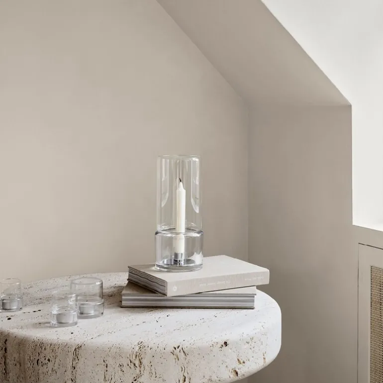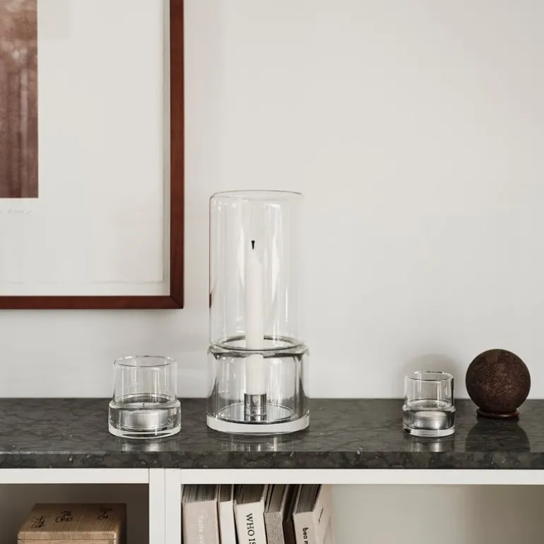 Tou stormlykt 2,9 cm klar fra Orrefors er et samarbeid med det anerkjente designstudioet Claesson Koivisto Rune. Serien – to lykter og en stormlykt – er laget i en todelt design som kombinerer funksjonalitet og minimalistiske linjer. Stormlykten (290 mm) passer både innendørs og utendørs, og er beregnet for blokklys eller et klassisk lys (praktisk metallholder følger med).