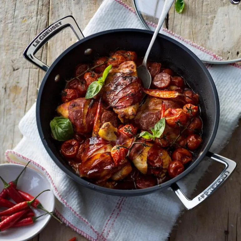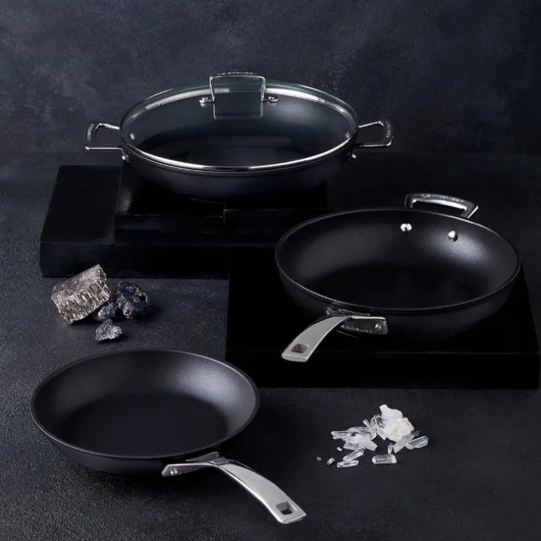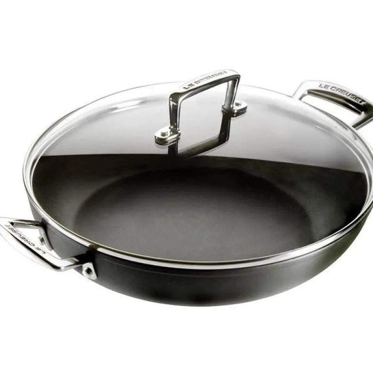 Den lave sautégryten 3,6 liter, med glasslokk fra Le Creusets Toughened Non-Stick-serie egner seg godt til alt fra pastaretter, paella og pilaff til klassiske gryteretter som bolognese eller chili con carne. Toughened Non-Stick-serien er fremstilt av presset aluminium, som er en effektiv varmeleder. Dette gjør gryten ideell til tilberedning av hurtige retter. Gryten har non-stick-belegg både innvendig og utvendig, noe som reduserer behovet for stekefett til et minimum, og gjør den enkel å rengjøre. Gryten kan brukes på alle varmekilder, også induksjon.