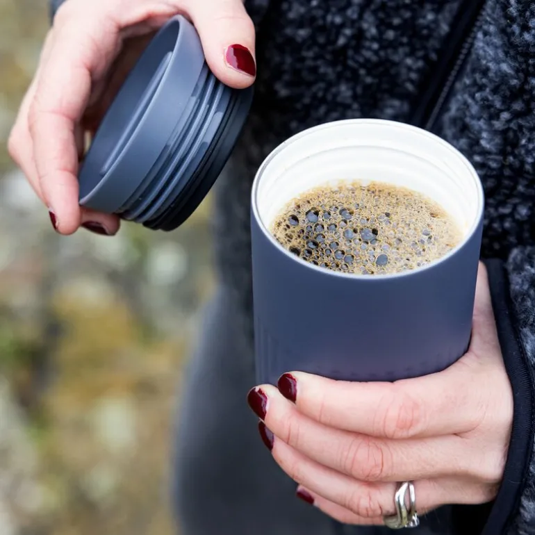 Termokoppen tåler oppvaskmaskin, har en kapasitet på 32 cl og er utviklet av det anerkjente designstudioet Sagaform.
