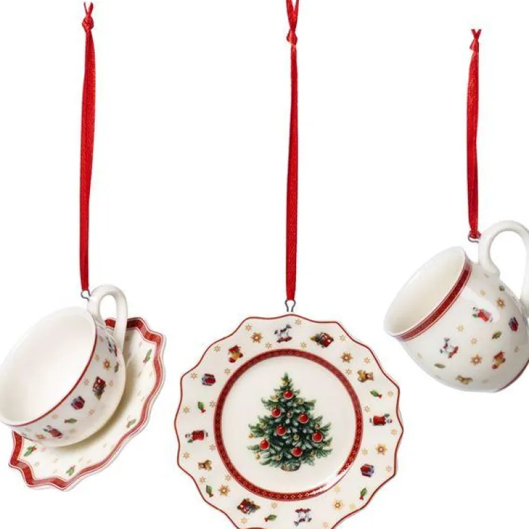 Toy’s Delight Decoration har fargerike festlige motiver som umiddelbart vil gi deg julestemning. Et ideelt tillegg til ditt festlige hjem for å samle og kombinere. Dette 3-delte hengende ornament-settet består av miniatyrversjoner av vårt festlige servise og gir fantastisk sesongdekorasjon. Legg til det siste dekorative preget til jul.