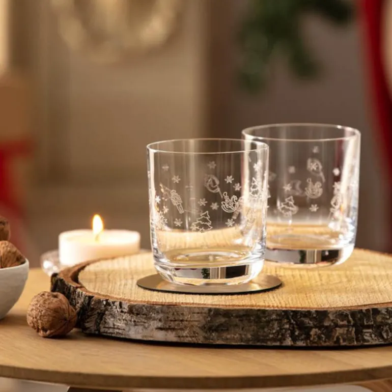 Julegjenstander i krystallglass med pantografidekor av høy kvalitet. Vannglassene fra Toy’s Delight-kolleksjonen setter scenen for et festøyeblikk.