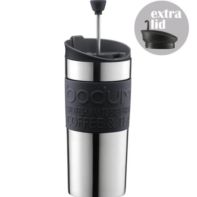 God kaffe på farten – det er ganske enkelt en menneskerett! Det er derfor Bodum har gjort muligheten for din morgen kaffe enda mer praktisk. I stedet for å stå i kø på den lokale kaffebaren, kan du brygge din egen kaffe i rolige omgivelser i ditt eget hjem, mens du gjør deg klar for dagen. Det er virkelig så enkelt som å trykke på knappen for å varme opp vannet i en kjele/vannkoker. Kaffen går i kruset og i løpet av fire minutter er kaffen klar og har utviklet seg til sin fulle aroma. Trykk ned stempelet og ut døren du drar. Den dobbelt veggede travel muggen holder kaffen varm – selv mens du venter på bussen en snørik vinter morgen. Travel mug er laget i plast, gummi, silikon og rustfritt stål.Tåler oppvaskmaskin. Ett ekstra lokk følger med.Merk! Disse er ikke 100 % tette.Mål:Volum: 0,35 LHøyde: 18,5 cm Bredde: 8 cm Lengde: 9 cmBodums visjon er ren og enkel. Bodum har som mål å bringe høykvalitets kaffe- og teløsninger og husholdningstilbehør til alle, i tråd med dine verdier. Bodum innoverer for å skape flotte design til rimelige priser basert på Bodums veiledende prinsipp om at form følger funksjonalitet, samtidig som Bodum holder øye med bærekraft, miljøansvar og respekt for velferden til sine ansatte, Bodums lokalsamfunn og planeten vår.God design trenger ikke være dyrt, Peter Bodum.