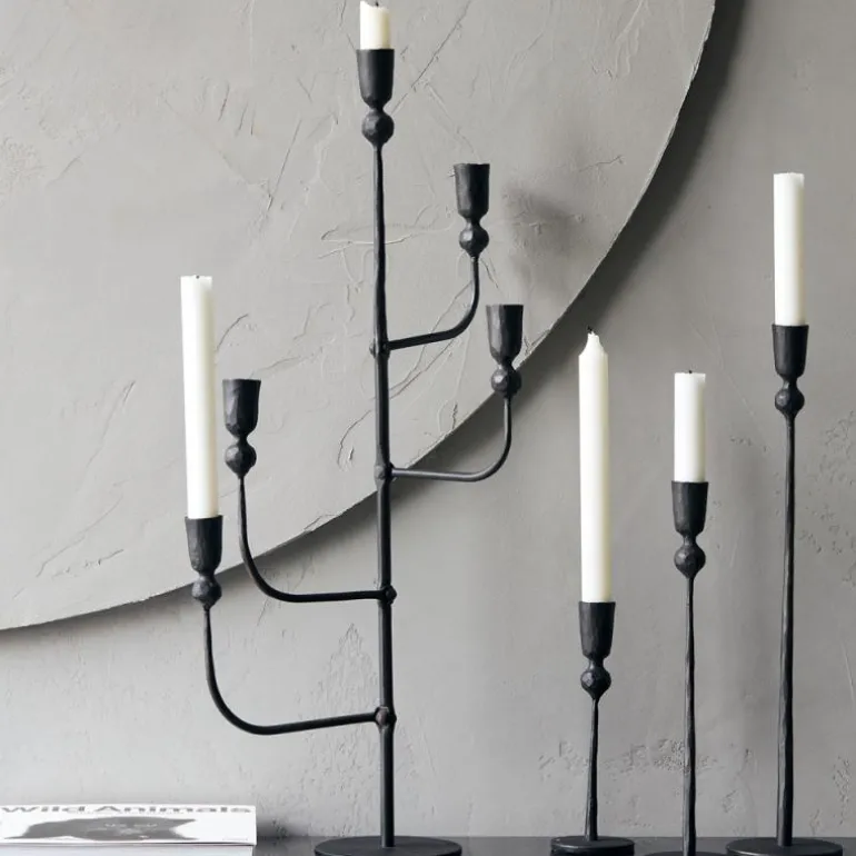 Tilføy litt industriell og undervurdert stil i hjemmet med den svarte, høye lysestaken Trivo 29 cm. Den håndlagde kvaliteten skinner gjennom i overflaten, som viser hvordan lysestaken ble laget. Det tunge jernet og den slanke, langstrakte formen blir bare mer slående når du tilføyer et lys. Dette er den mellomstore versjonen av Trivo lysestaker som kommer i 3 størrelser. Bland høydene for å lage en fantastisk utstilling som tar fokuset i vinduskarmen eller som et midtpunkt på spisebordet.