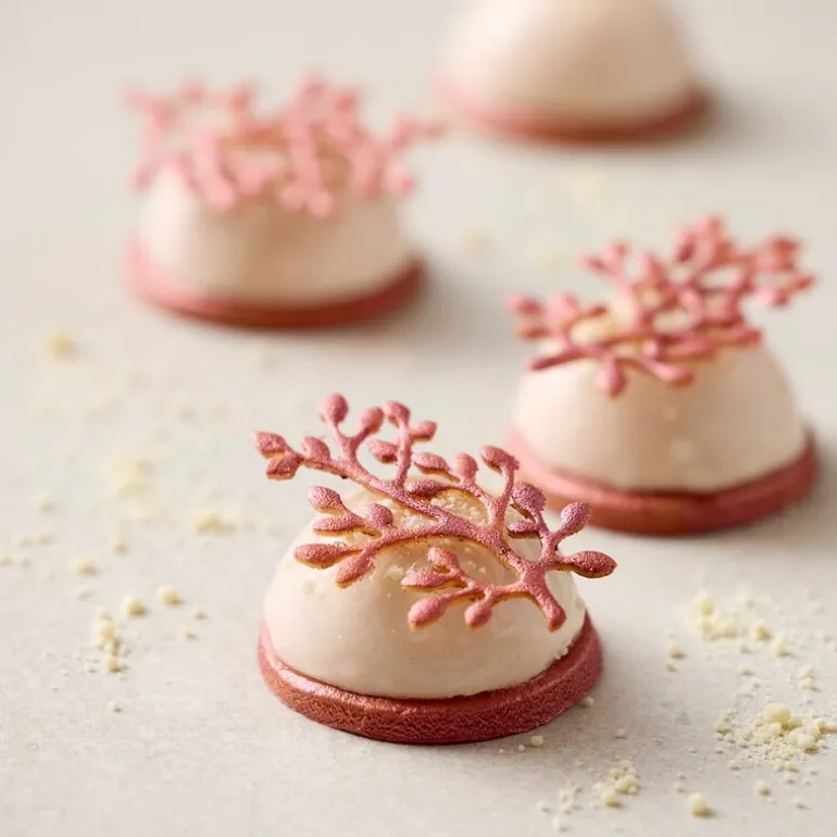 Blomsterbergs tuileform med grenmotiv gir deg muligheten til å lage fire tuiles som passer perfekt til latte, desserter og kaker. Formen gjør det enklere å oppnå sprø, delikate tuiles med jevn struktur, og gir serveringen et dekorativt preg.