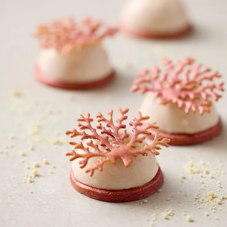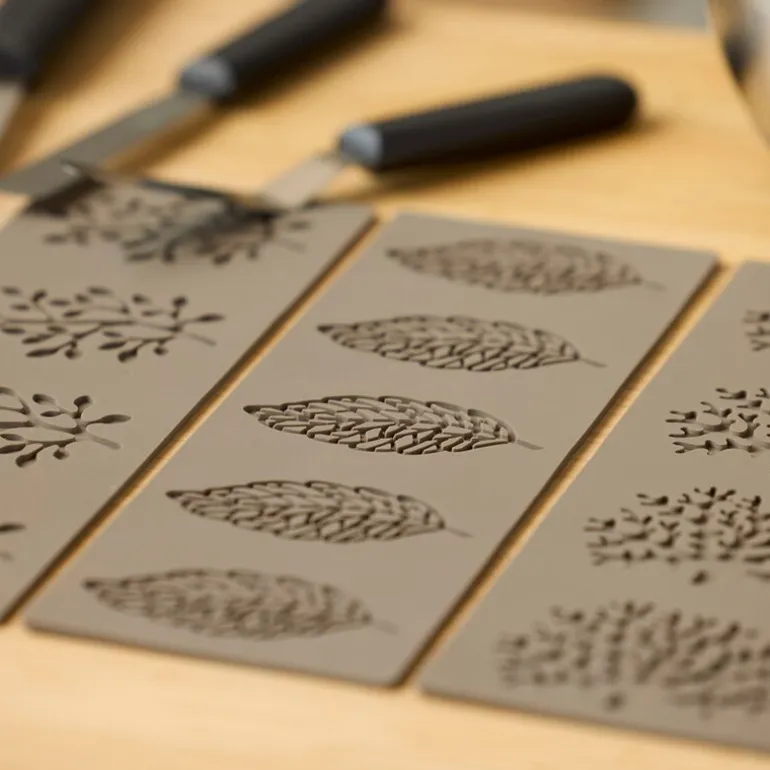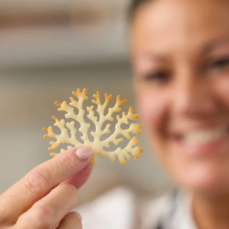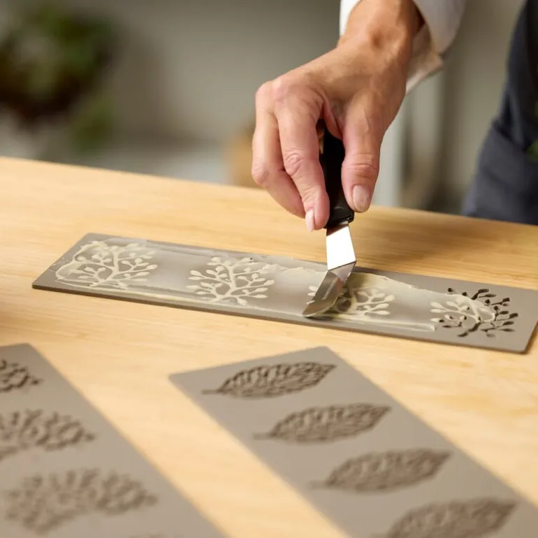 Blomsterbergs tuileform med tremotiv er designet for å lage fire tuiles som gir en ekstra dimensjon til desserter og latte-servering. Den gjør det enklere å oppnå tynne, sprø tuiles med tydelig mønster og jevn form.