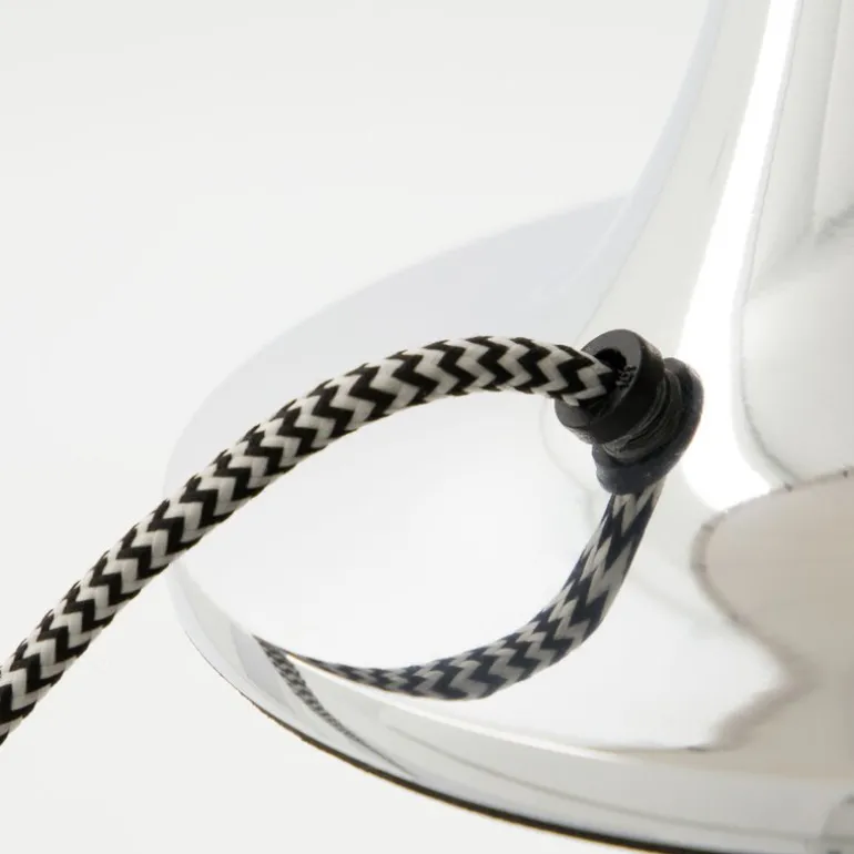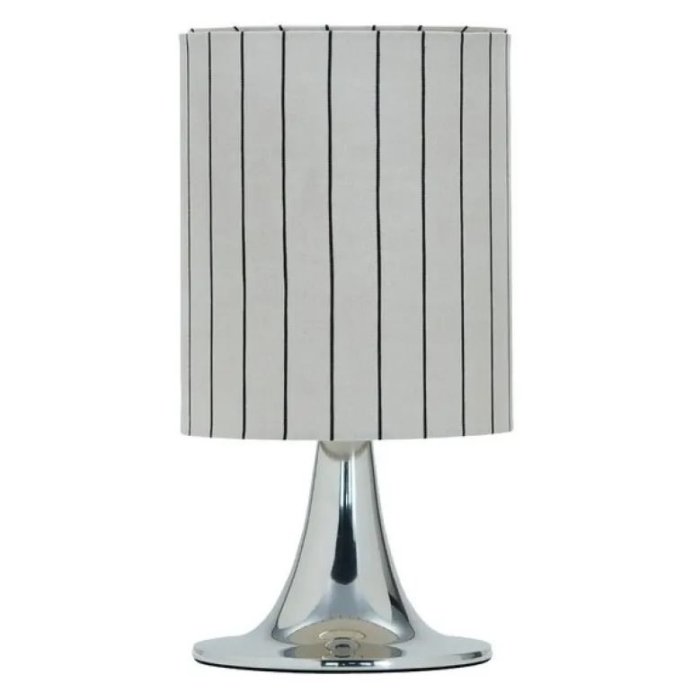 Den linfargede stoffskjermen med vertikale sorte striper skaper en subtil kontrast som gir lampen personlighet og karakter. Den 2 meter lange dekorative kabelen gir deg fleksibilitet i plasseringen, og lampen bruker en E14-pære med maks 7 W LED. Skap en sofistikert atmosfære i hjemmet ditt med denne stilige bordlampen.