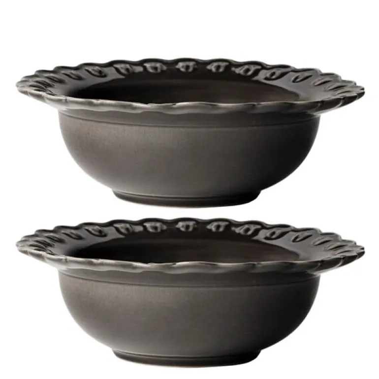 PotteryJo TULIPA dyp tallerken, 17 cm i Almost Black, er en liten tallerken med elegant bølgekant og vakkert tulipanrelieff. Den dype formen gir både funksjon og estetikk, ideell for frokost, småretter eller dessert.