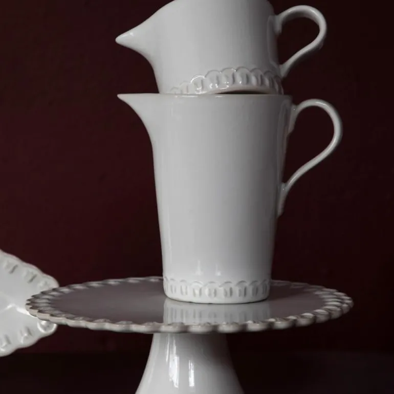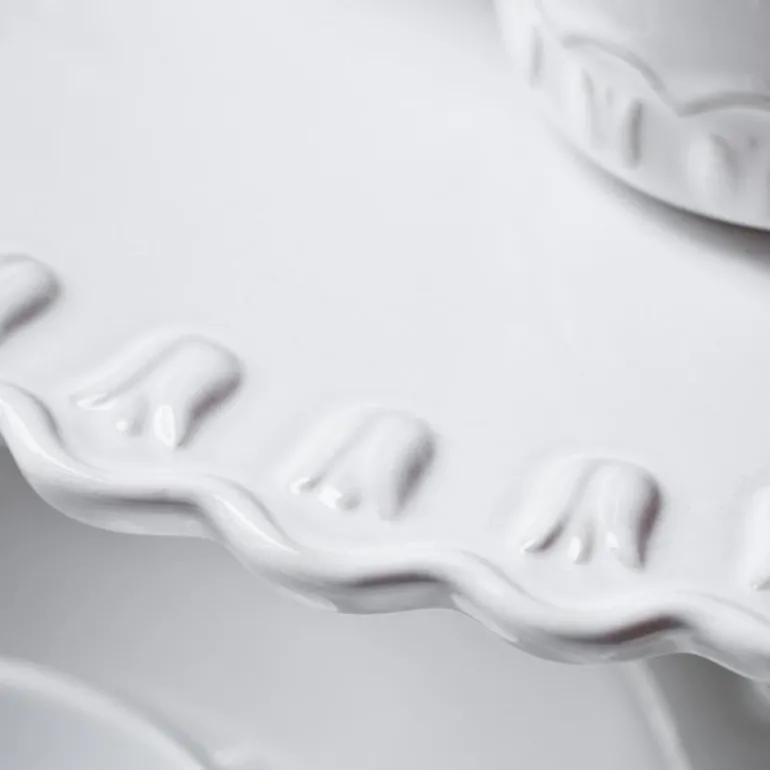 Med leken kamskjellkant, robust materiale som tåler daglig bruk, og de vakreste glasurene, er Tulipa-kolleksjonen produsert PotteryJo’s fabrikk i Portugal.