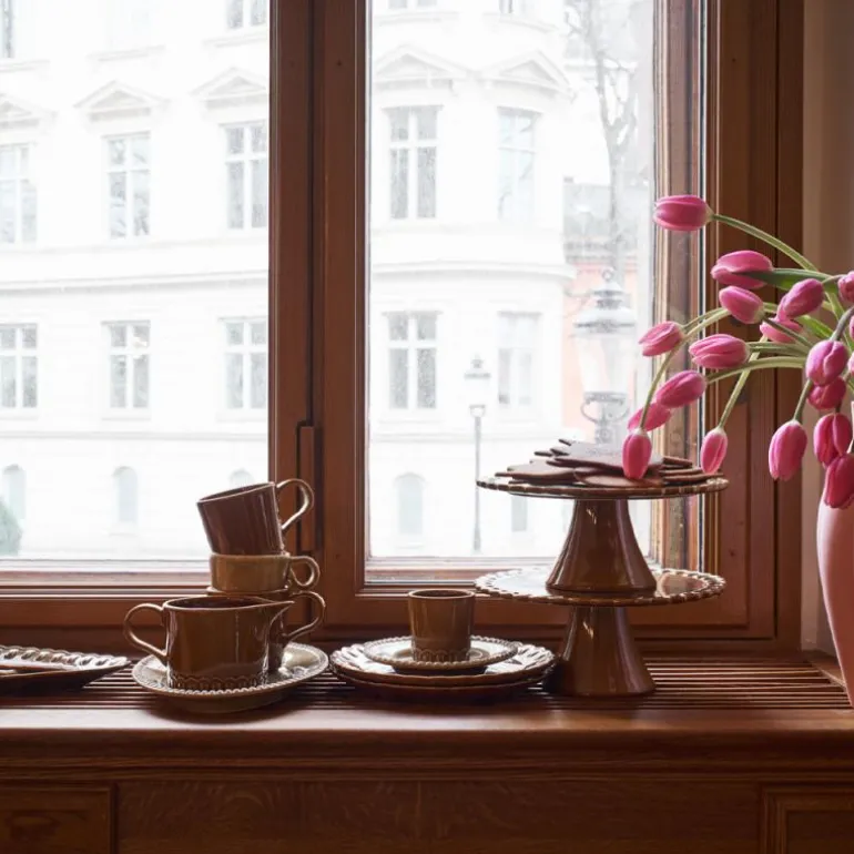 Tulipa kanne 60 cl umbra fra PotteryJo. «Tulipa-kolleksjonen er en hyllest til min barndom og den bursdagssangen min bestemor alltid sang for meg. «Med en enkel tulipan…på din spesielle dag!» Denne samlingen er en leken og vakker tolkning av den svenske feiringskulturen og tulipanens betydning.» Johanna Hampf, grunnlegger.