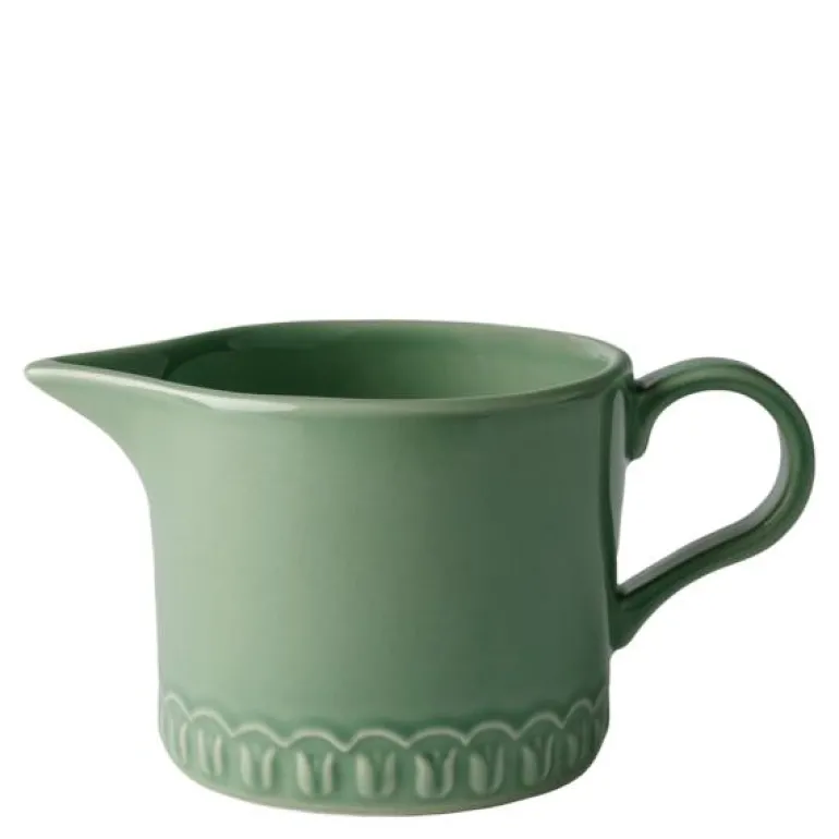 Med leken kamskjellkant, robust materiale som tåler daglig bruk, og de vakreste glasurene, er Tulipa-kolleksjonen produsert PotteryJo’s fabrikk i Portugal.