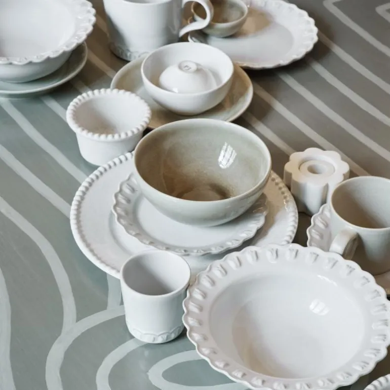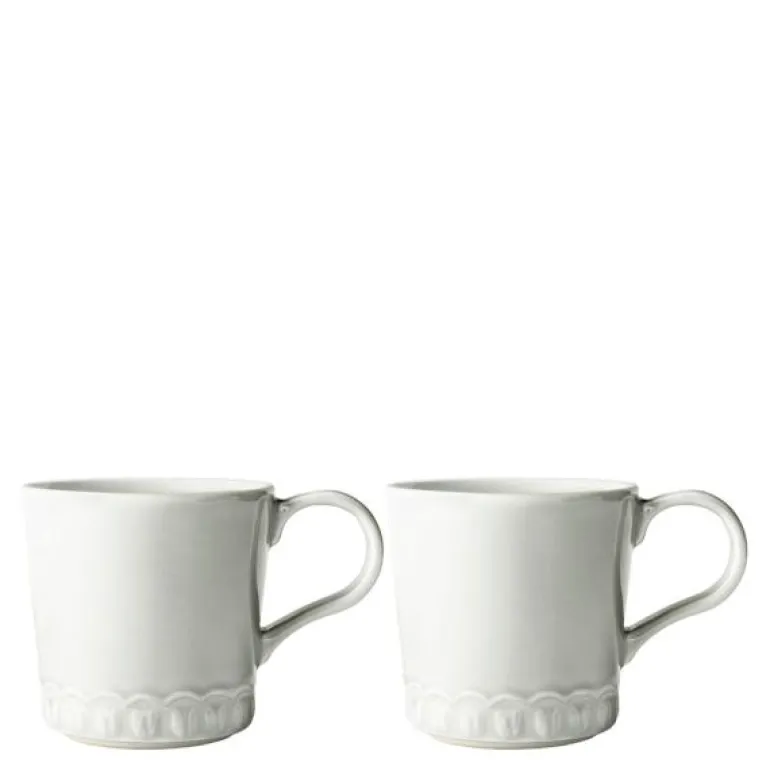 To stykk kopper 40 cl med hank. Koppene, fra serien Tulipa til PotteryJo, er utført i en klassisk hvit glasur. En perfekt kaffe latte eller tekopp med håndtak. Vakkert håndlaget i støpemetoden på PotteryJo’s fabrikk. Den har en vakker tulipanpreget bunn samt et stort komfortabelt håndtak.