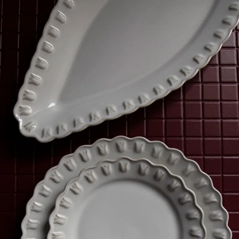Tulipa ovalt fat 45 cm hvit fra PotteryJo. «Tulipa-kolleksjonen er en hyllest til min barndom og den bursdagssangen min bestemor alltid sang for meg. «Med en enkel tulipan…på din spesielle dag!» Denne samlingen er en leken og vakker tolkning av den svenske feiringskulturen og tulipanens betydning.» Johanna Hampf, grunnlegger.