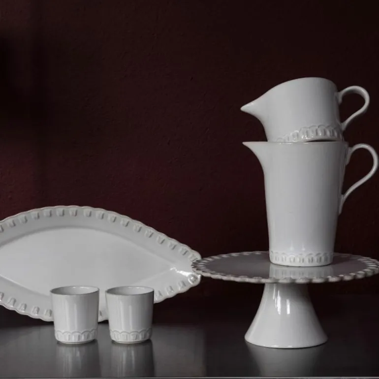 Med leken kamskjellkant, robust materiale som tåler daglig bruk, og de vakreste glasurene, er Tulipa-kolleksjonen produsert PotteryJo’s fabrikk i Portugal.