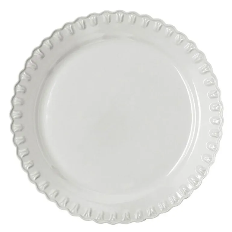 PotteryJo TULIPA rundt fat, 37 cm i hvit, er et håndlaget serveringsfat i steintøy med bølget kant og tulipanrelieff. Hver detalj er formet med omsorg, og hvert fat har sin unike karakter.