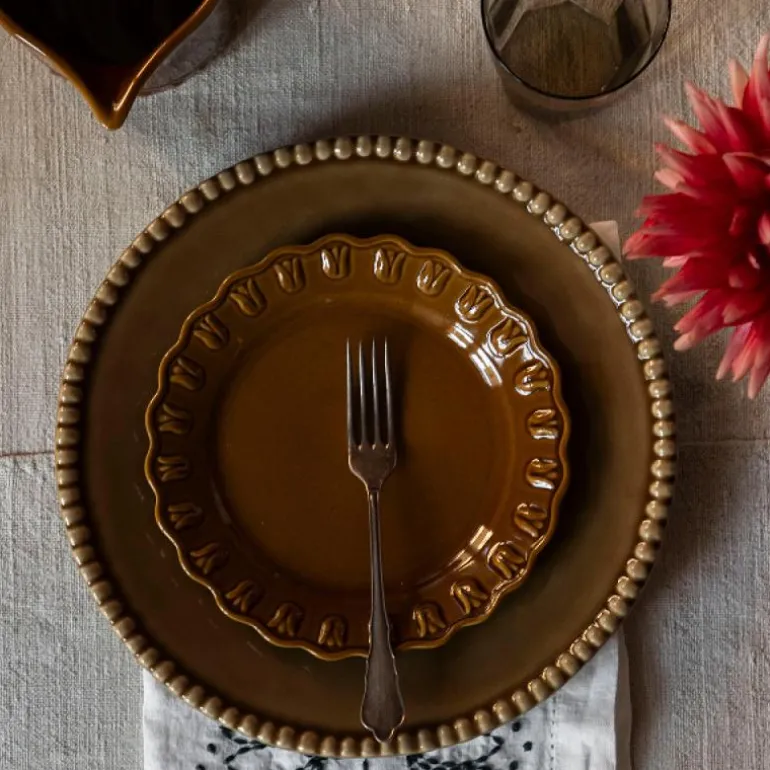 To stykk desserttallerkenen 20 cm, fra Tulipa-serien til PotteryJo. Utført i en vakker umbra glasur, og passer perfekt til flere av PotteryJo’s andre kolleksjoner for å blande ulike mønster. Tulipa er håndlaget i stengods i Portugal.