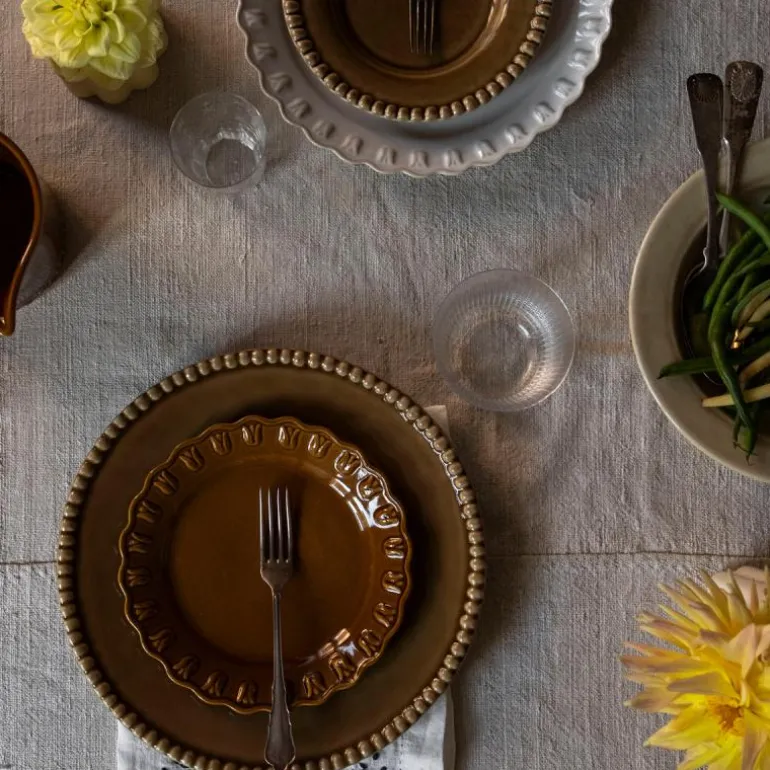 Med leken kamskjellkant, robust materiale som tåler daglig bruk, og de vakreste glasurene, er Tulipa-kolleksjonen produsert PotteryJo’s fabrikk i Portugal.