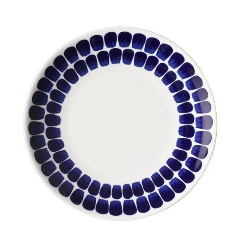 Tuokio Tallerken 20cm Koboltblå. Tuokio-servisets mønster får sin rytme fra sterke penselstrøk. Mønsteret utstråler det finske og har blitt inspirert av Arabias dekorative historie, som strekker seg over 140 år. Formene på serviset kommer fra de tidløse linjene i 24h-serien. Tuokio-mønsteret passer godt inn i moderne, allsidige borddekkinger. Designere Harri Helorinne og Jarkko Kallio. Kan vaskes i oppvaskmaskin.