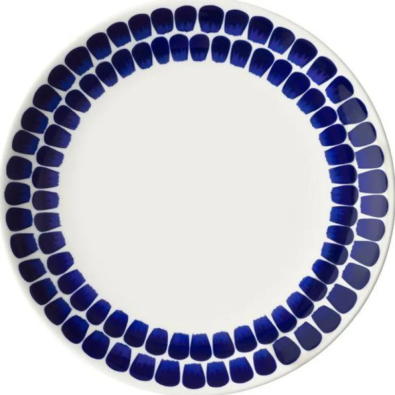 Tuokio Tallerken 26cm Koboltblå. Tuokio-servisets mønster får sin rytme fra sterke penselstrøk. Mønsteret utstråler det finske og har blitt inspirert av Arabias dekorative historie, som strekker seg over 140 år. Formene på serviset kommer fra de tidløse linjene i 24h-serien. Tuokio-mønsteret passer godt inn i moderne, allsidige borddekkinger. Designere Harri Helorinne og Jarkko Kallio. Kan vaskes i oppvaskmaskin.