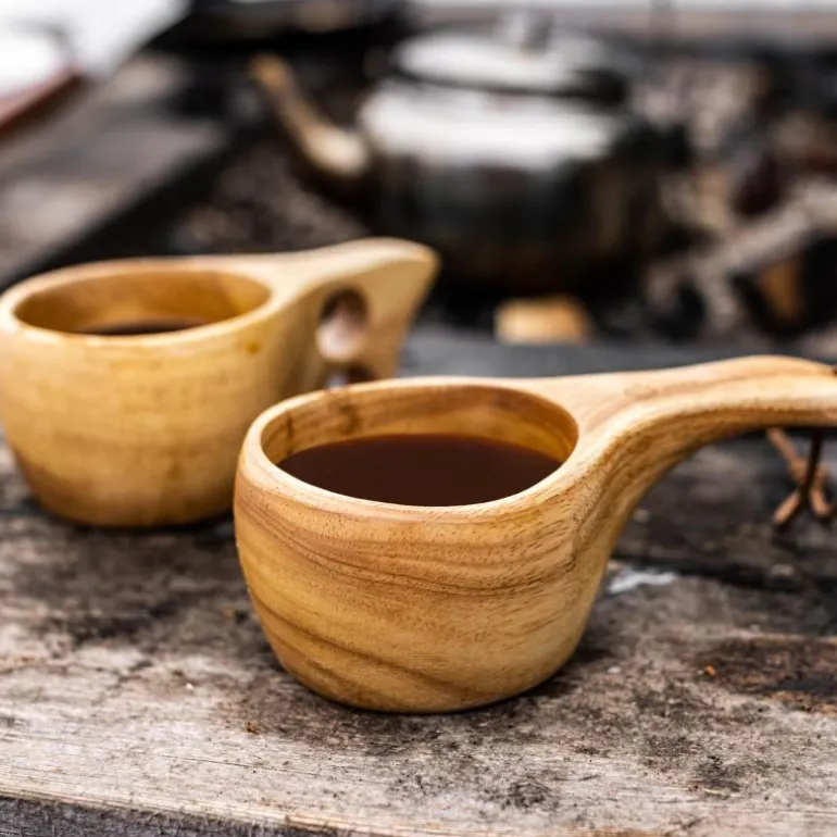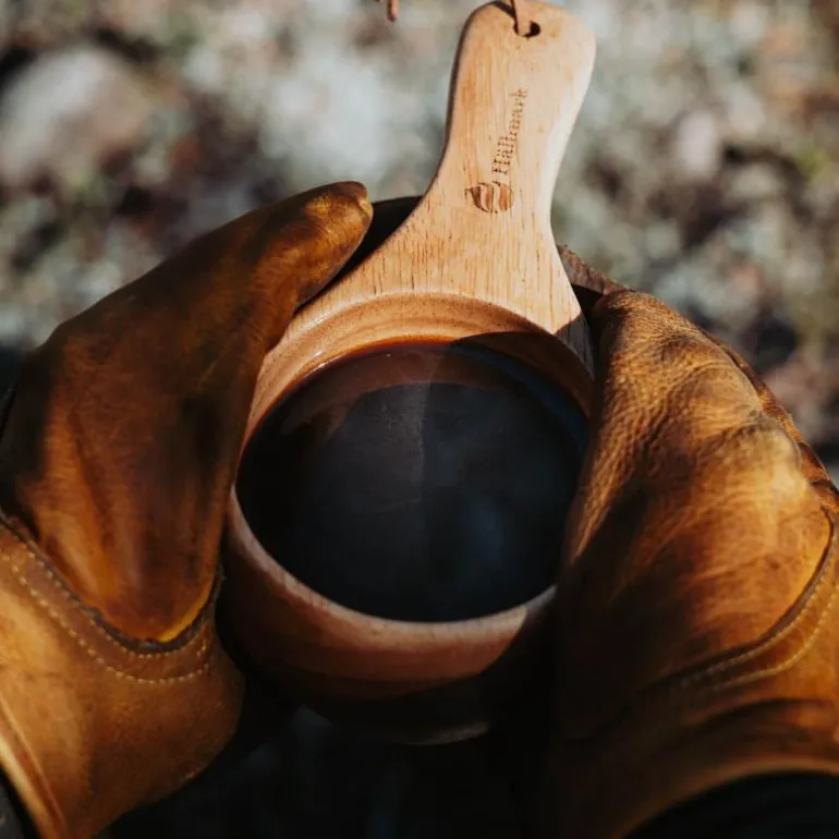 Turkopp 15 cl i tre med håndtak fra Hällmark. Trekoppen i gummitre med enkelt håndtak er perfekt til vann, kaffe eller varm sjokolade når man er ute på tur. Drikken smaker ekstra godt på tur når den nytes fra en trekopp.