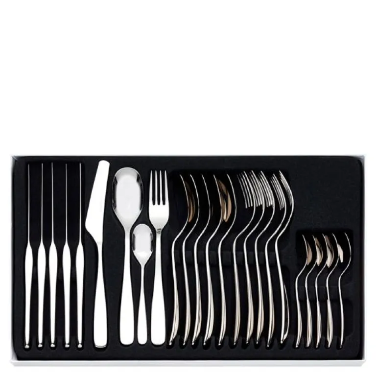 Bestikksett 24 deler fra den ergonomiske, stilsikre Tuva-serien fra Hardanger Bestikk. Bestikket har god balanse for et godt grep og bevegelse. Stålet som er av 18/10 rustfritt stål tåler oppvaskmaskin, og produktet har livstidsgaranti. Bestikket leveres i gaveeske og inneholder alt du trenger til seks personer;