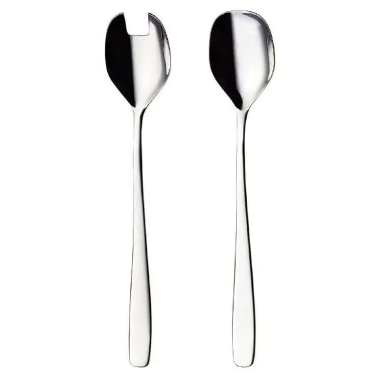 Salatsett fra den ergonomiske, stilsikre Tuva-serien fra Hardanger Bestikk. Bestikket har god balanse for et godt grep og bevegelse. Salatskjeen og salatgaffelen har gripevennlig håndtak og god dybde. Delene komplementerer hverandre for sømløs servering. Stålet som er av 18/10 rustfritt stål tåler oppvaskmaskin, og produktet har livstidsgaranti. Salatsettet leveres i gaveeske og inneholder;