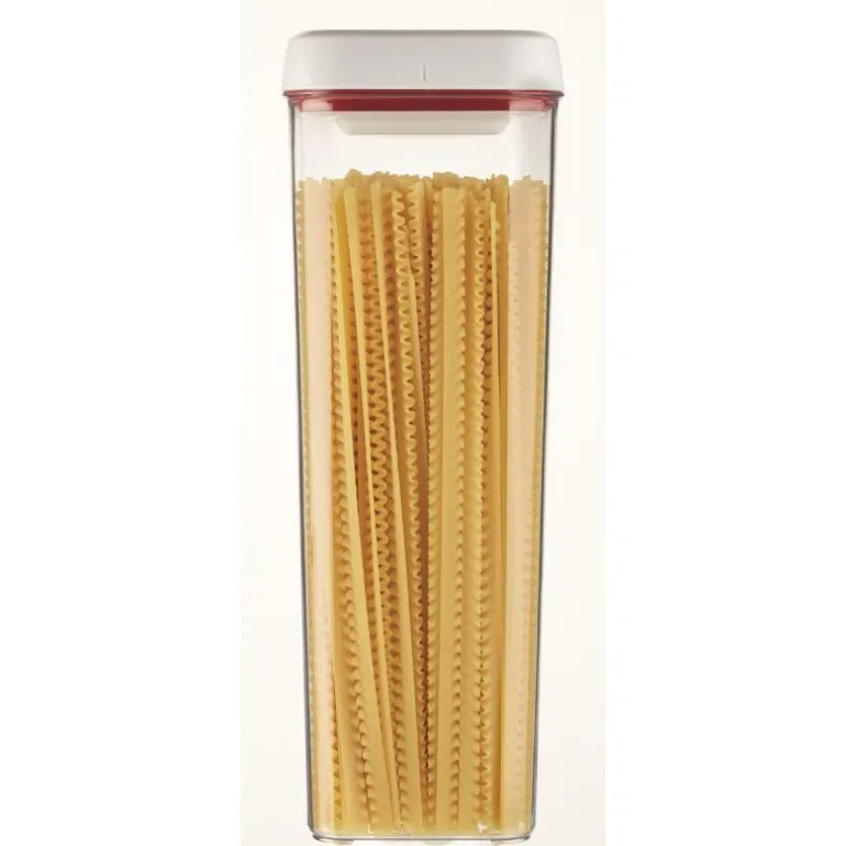 Den enkle vri for å låse funksjonen forsegler friskhet og holder fuktighet ute, perfekt for tørre varer som kaffe, pasta eller ris, så vel som andre ting rundt hjemmet. De avrundede kantene er designet for enkel helling og gjør beholderne enkle å rengjøre