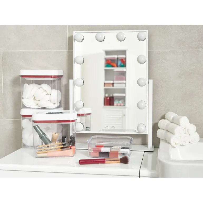 Den enkle vri for å låse funksjonen forsegler friskhet og holder fuktighet ute, perfekt for tørre varer som kaffe, pasta eller ris, så vel som andre ting rundt hjemmet. De avrundede kantene er designet for enkel helling og gjør beholderne enkle å rengjøre